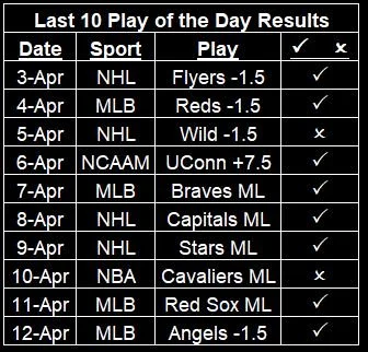 Lucky Capper’s BEST PLAY OF THE DAY in MLB, NBA, NHL, UFC, or WNBA. *GUARANTEED to WIN or the next day play is free and automatically shown on the PoD page.